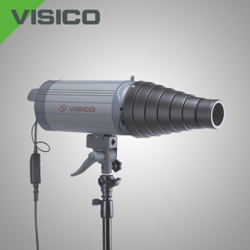 3. build in 2.4Ghz radio receiver, can match with portable VISICO VC-801TX multifunctional remote control ( perfectly combine remote and trigger into one). it is very easy to operate, through the combination of group and channel, can free control among each studio. The remote control can adjust flash power and switch on/off modeling lamp. (for example one studio has 4 light, can sparately control 64 pcs studio flash maximumly, and control among 16 studios. Suitable for the big scene).
